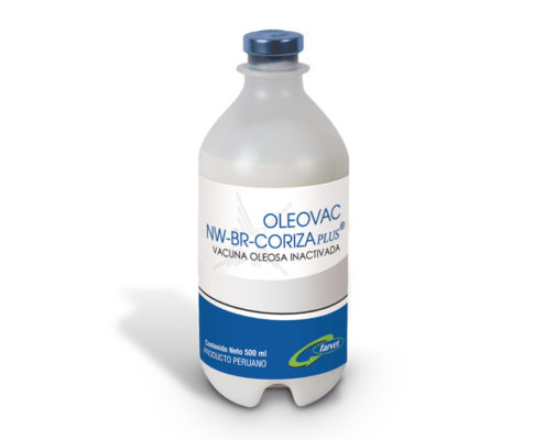 OLEOVAC NW-BR-CORIZA PLUS® contains an inactivated combination of the LaSota strain of the newcastle disease virus (NDV), the Massachusetts strain of the infectious bronchitis virus (IBV) and the serotypes A, B and C of the culture of Avibacterium paragallinarum, homogenized with an oily adjuvant. The vaccine contains for every 1.0 ml: ≥ 4×108.0 TCID50% of NDV, ≥ 4×108.0 TCID50% of IBV, and ≥ 4×108.0 CFU of Avibacterium paragallinarum.