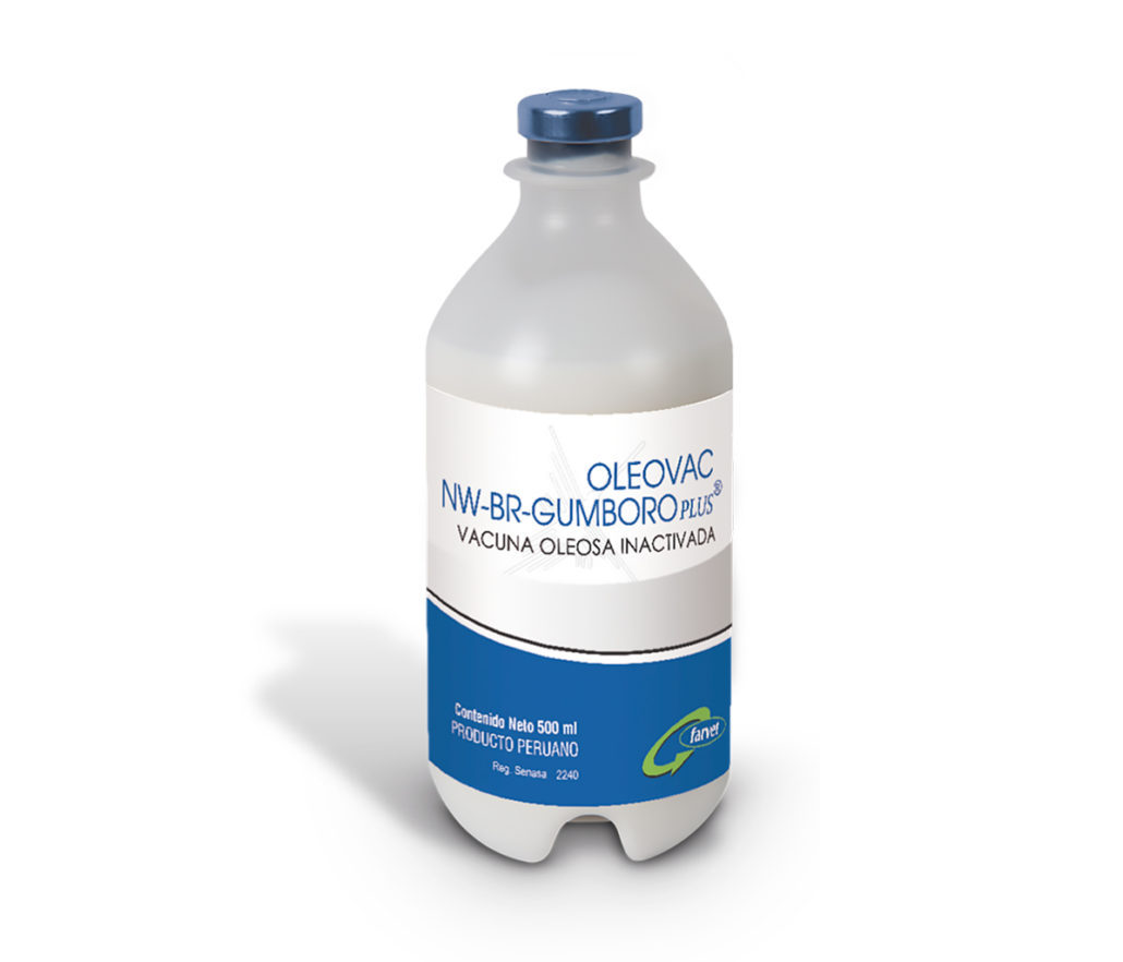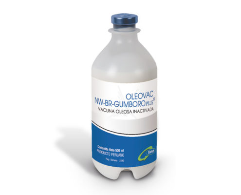 OLEOVAC NW-BR-GUMBORO PLUS® contains an inactivated combination of the LaSota strain of the newcastle disease virus (NDV), the Massachusetts strain of the infectious bronchitis virus (IBV), and the intermediate Lukert strain of the disease virus Infectious bursa (IBDV), homogenized with an oily adjuvant. The vaccine contains for every 1.0 ml: ≥4×108.0 TCID50% de NDV, ≥4×108.0 TCID50% of IBV, ≥4×107.0 TCID50% of IBDV.